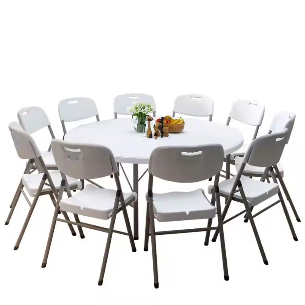 طقم طاولة دائرية فايبر قابل للطي 152 سم مكون من طاولة و عشر كراسيأبعاد الطاولة : قطر الطاولة 152 سم ارتفاع الطاولة 74 سم