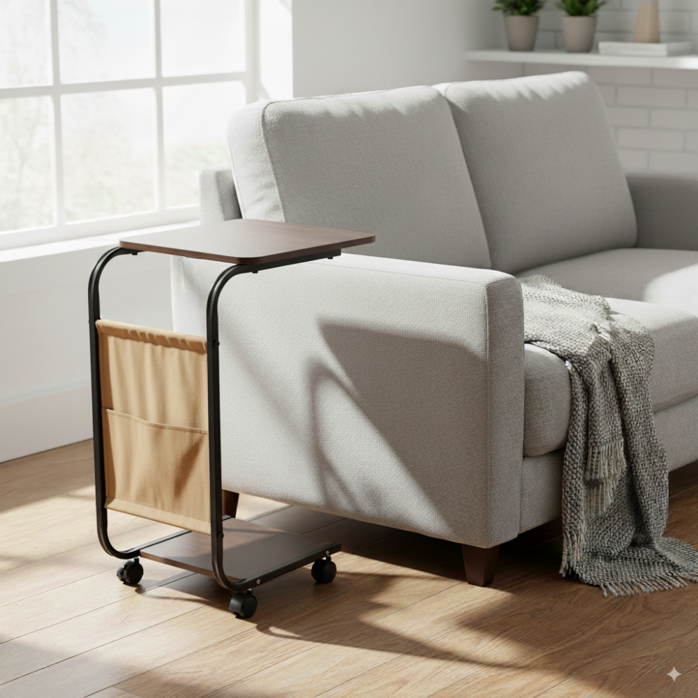 - طاولة تقديم بتصميم C أنيق يوفر استخدامًا مريحًا بجانب الأريكة أو السرير