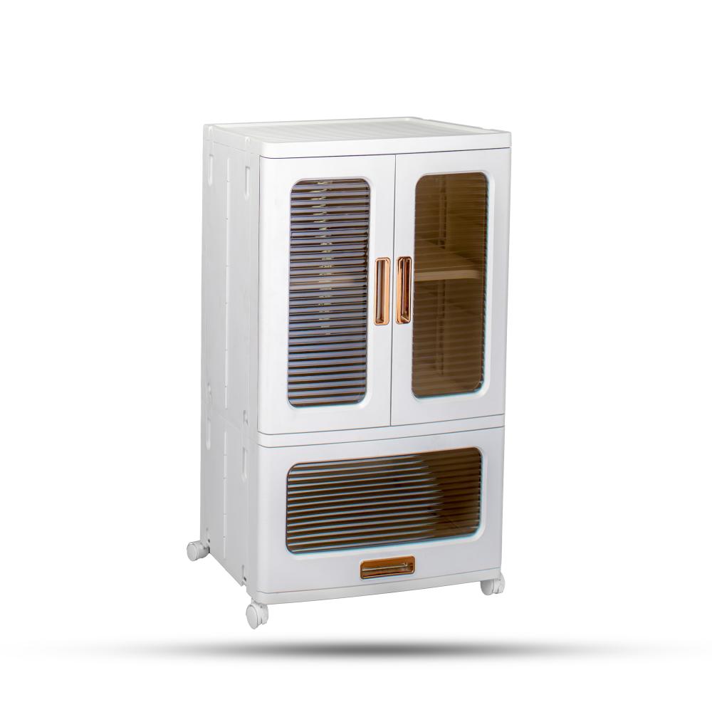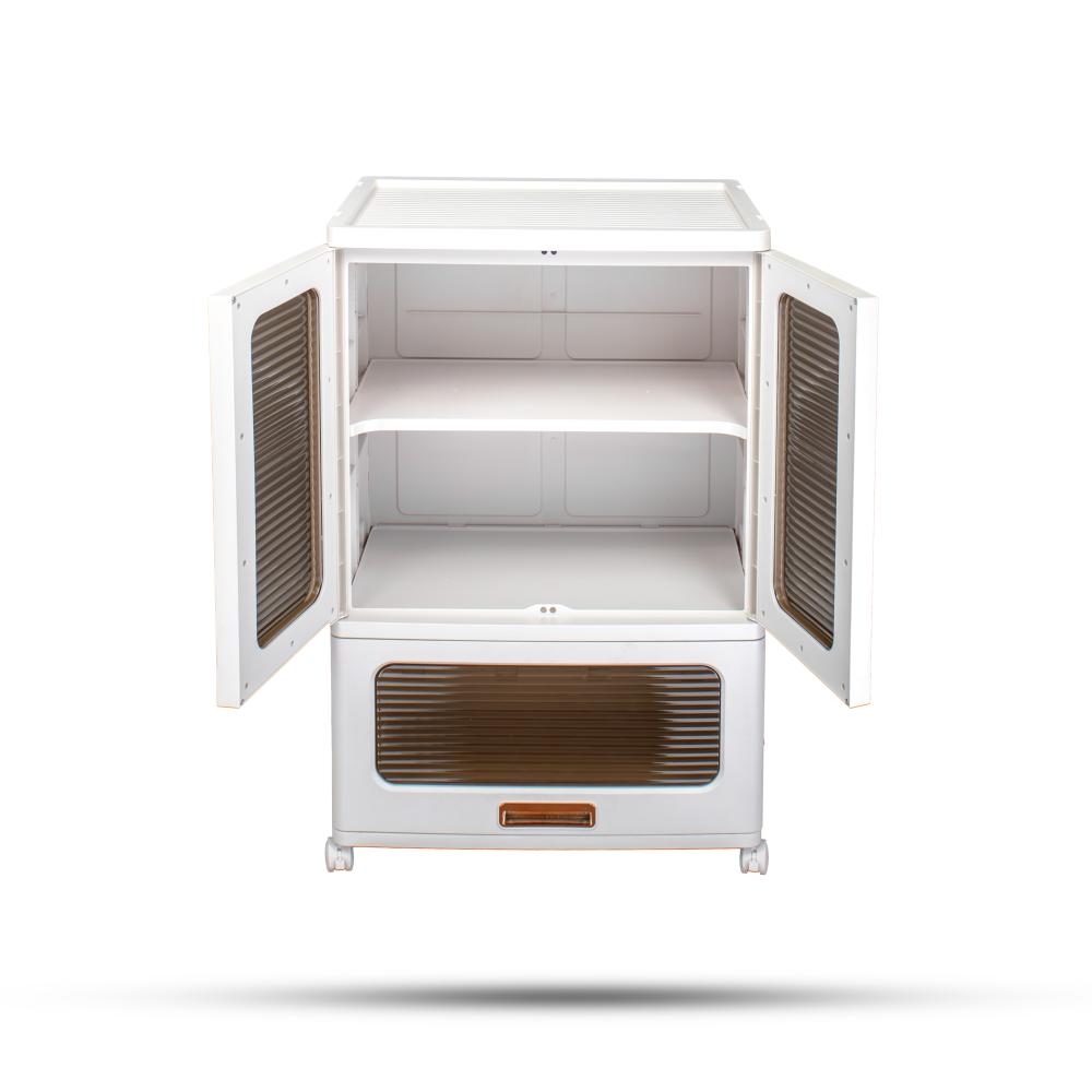 • اسم المنتج: أدراج تخزين بلاستيكية قابلة للطي – طبقة واحدة مع بابين وسحاب