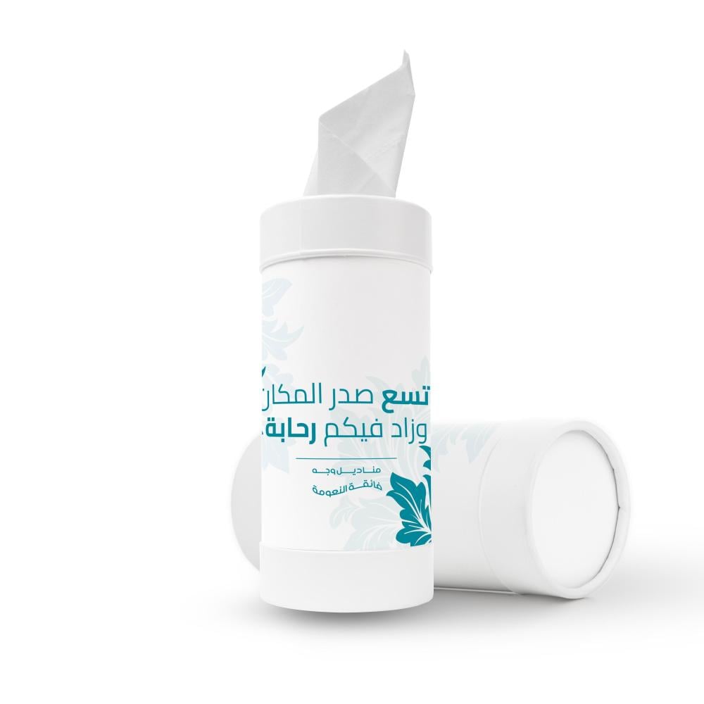 مناديل أسطوانية بطباعة احترافية تعبر عن ذوقك أو هوية علامتك التجارية — مثالية للمناسبات الخاصة كالأعراس والمواليد وأعياد الميلاد، وأيضًا للشركات التي تبحث عن عرض راقٍ لشعارها.