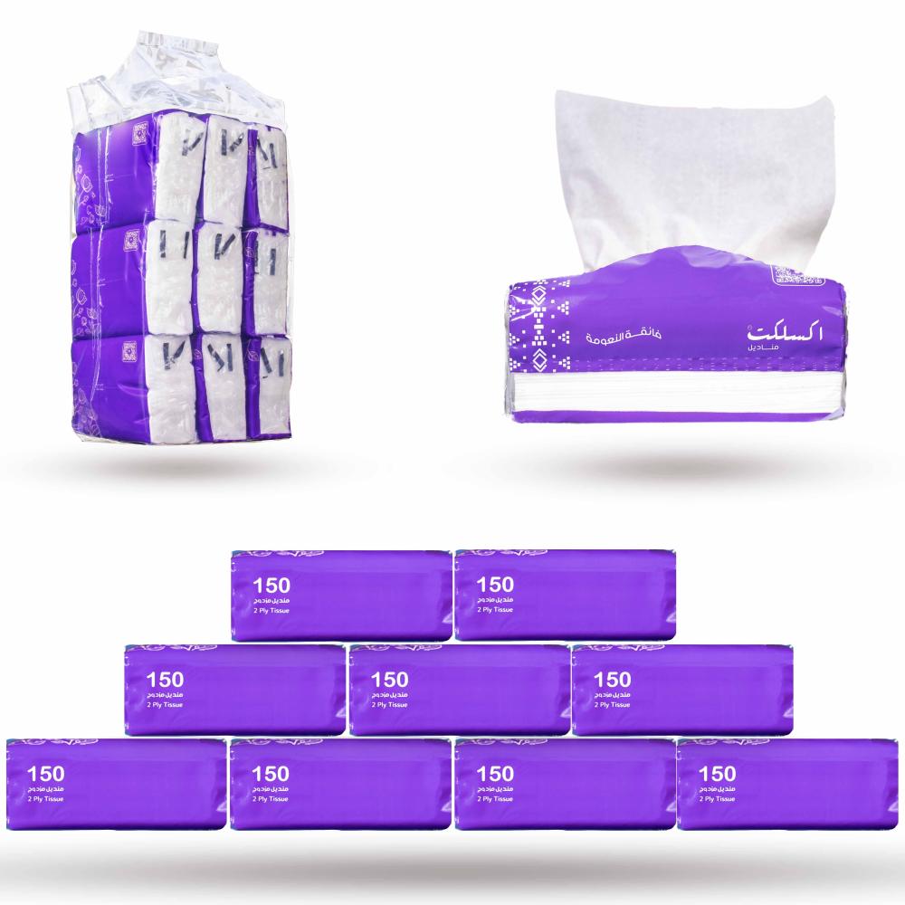 - عدد المناديل في الكيس: 150 منديل مزدوج