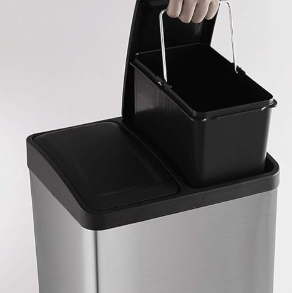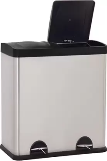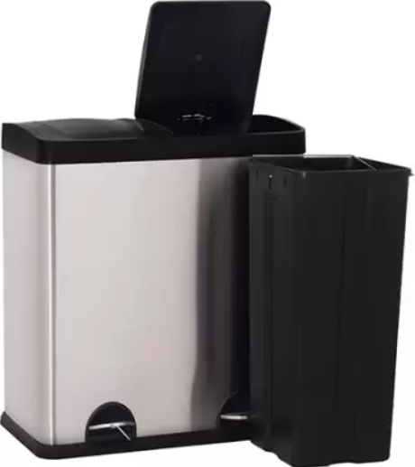 - سلة نفايات مزودة بحوضين داخليين لتسهيل عملية فصل القمامة وإعادة التدوير.