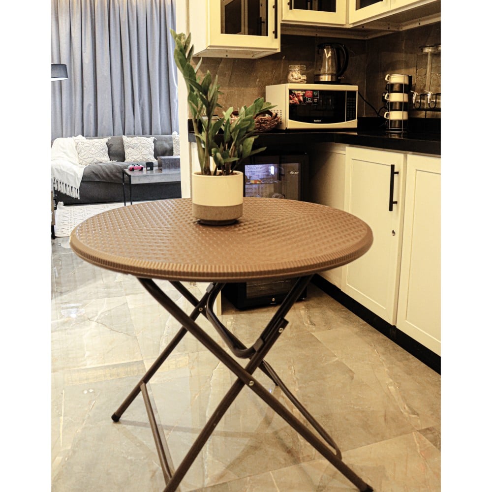 The folding table is made of powder-coated steel, which is highly durable and rust-resistant, providing a better user experience
