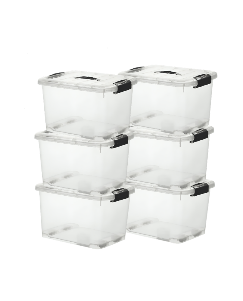 مجموعة من 6 تخزين شفافة، كل منها بسعة 45 لترًا، حلاً عمليًا ومتعدد الاستخدامات لإدارة متعلقاتك.