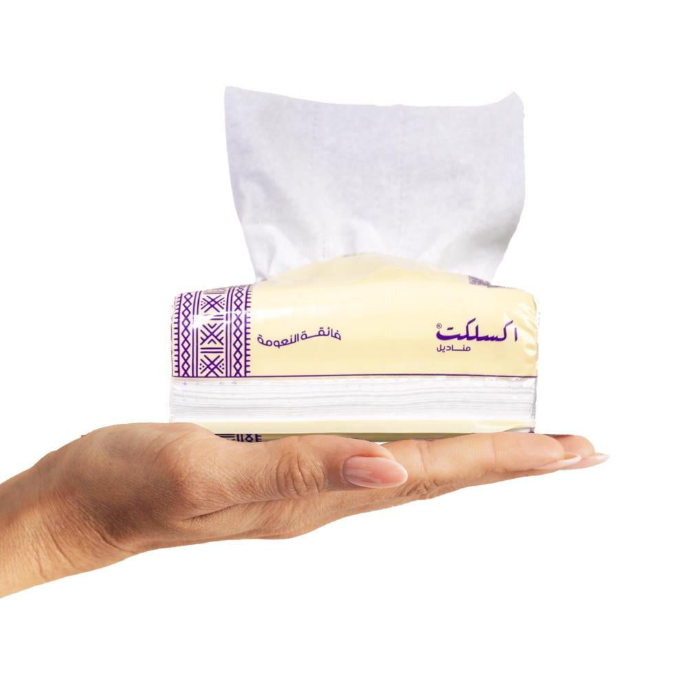 - علب مناديل مربعة تتميز بامتصاص فعّال يناسب احتياجاتك من النظافة دون ترك أي أثر
