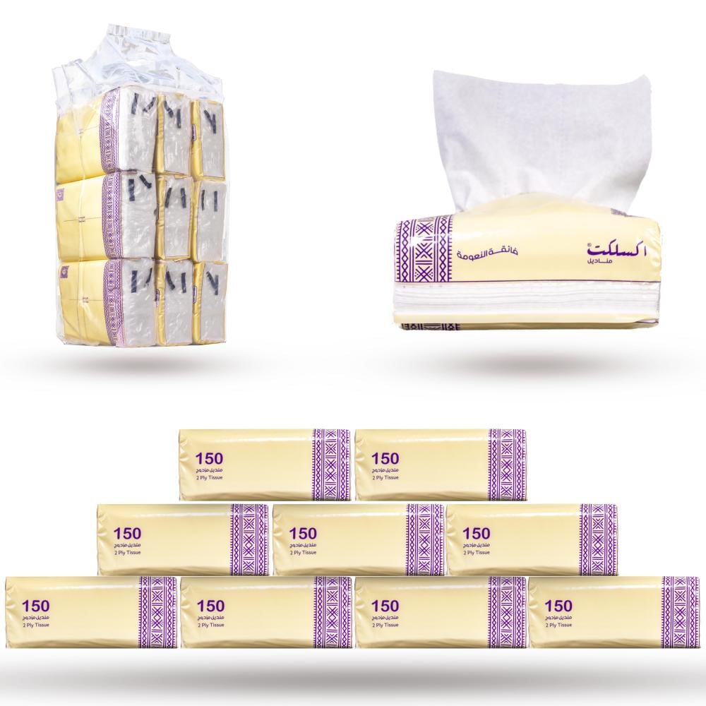 - عدد المناديل: 150 منديل مزدوج لكل كيس